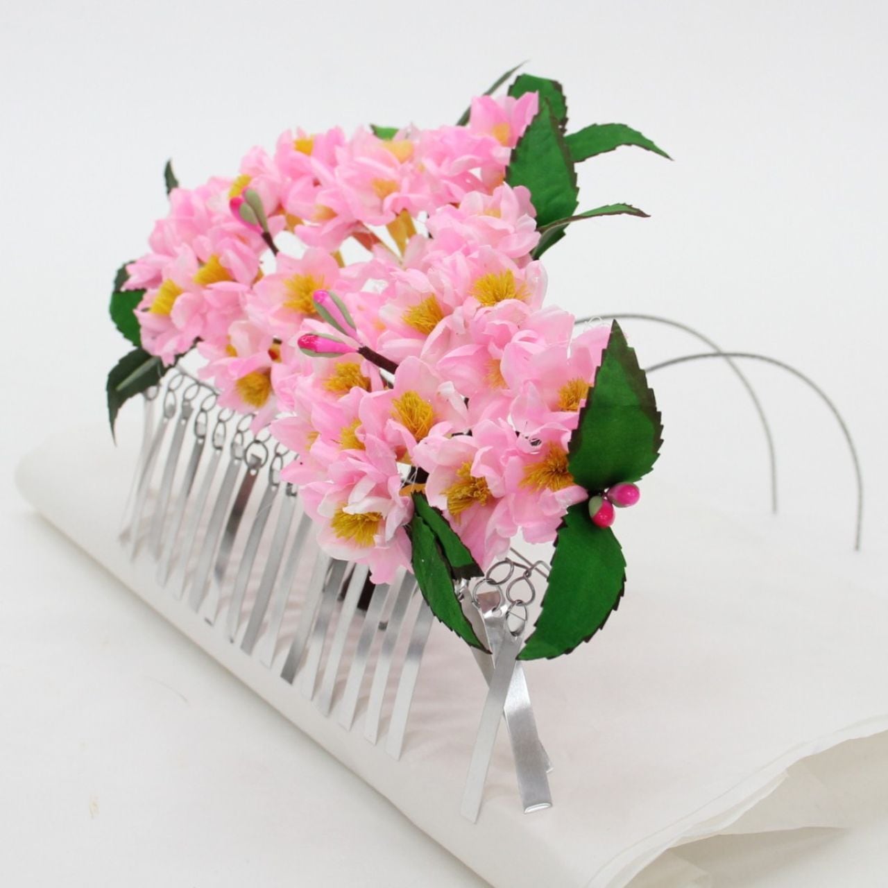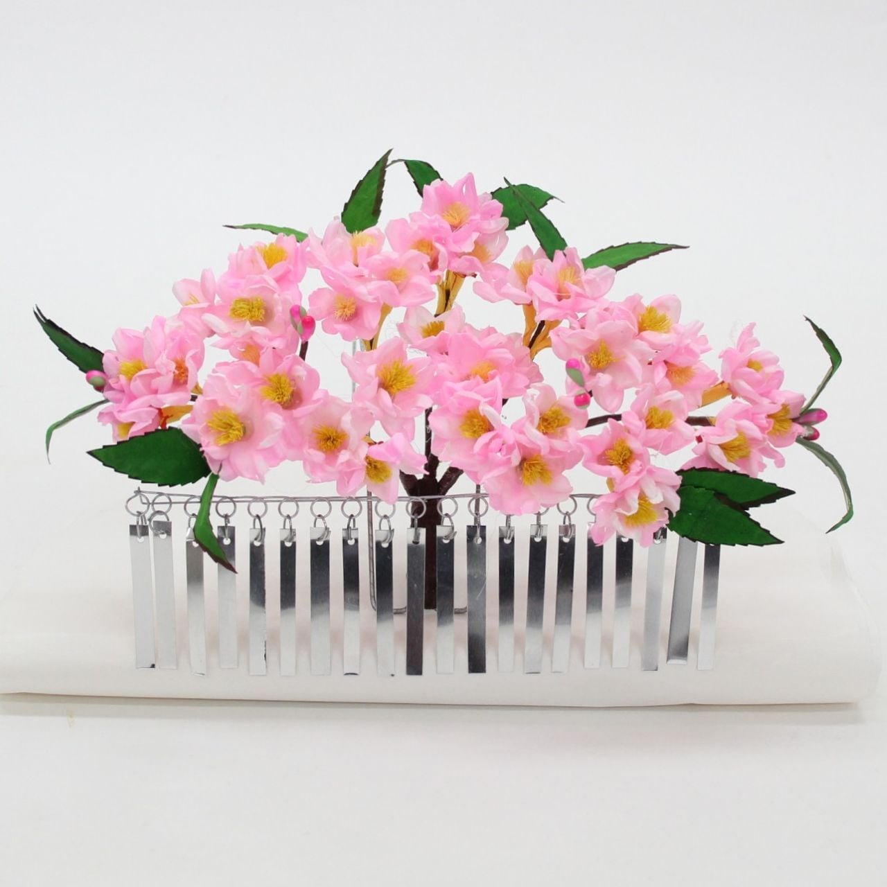 巫女舞でお使いになる、桜の花簪でございます。 ●サイズ:幅約22,5cm 奥行き約23cm 高さ約14cm ●日本製 花の簪 簪 巫女舞 浦安舞い 巫女 巫女さん みこ 髪飾り 装束 神社 お神楽 おかぐら 神事 舞 舞う まう 踊り 小道具 国産 日本産 送料無料